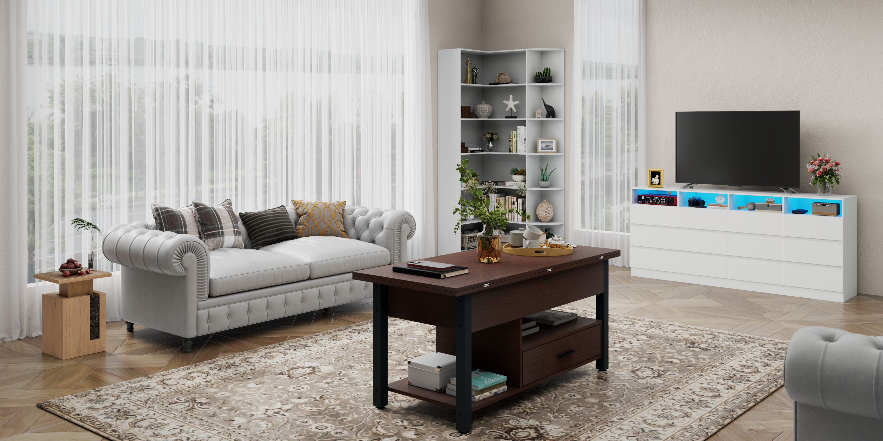 Loomie 71" Tall Kitchen Pantry Storage Cabinet, Large Kitchen Hutch with Glass Doors & 3 Drawers